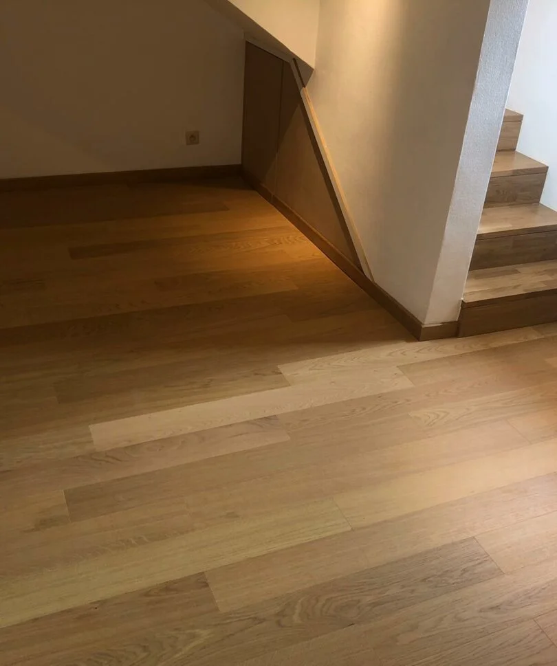 Ce revêtement de sol est fabriqué à partir d’une pièce de bois massif, sans autre matériaux ou couches. Le bois, souvent du chêne, du hêtre, de l’érable, du merisier ou du pin, y est naturel. Chaque essence apporte sa spécificité et son élégance. S’il peut bouger avec la température ou l’humidité, le parquet massif est particulièrement solide. Sa durabilité n’est plus à prouver. Celui-ci peut être poncé, peint, vitrifié, huilé… pour se renouveler à l’infini. Nous redressons et renforçons également les anciennes poutres avant la pose du nouveaux plancher dans les étages.