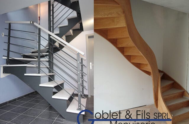 Chez Menuiserie Goblet & Fils, nous concevons et réalisons des escaliers sur mesure en bois massif (Hêtre, Chêne, Frêne, Hévéa, Erable, Noyer,Tulipier…… ) adaptés à chaque habitation et qui s’intègre parfaitement à l’intérieur, tant sur le plan esthétique que fonctionnel. Nous réalisons également des escaliers pour compartimentage coupe-feux, des escaliers avec éclairage Leds encastrés et le recouvrement d’escalier béton. Notre approche repose sur une analyse précise de l’espace disponible, des contraintes techniques et des goûts des habitants.